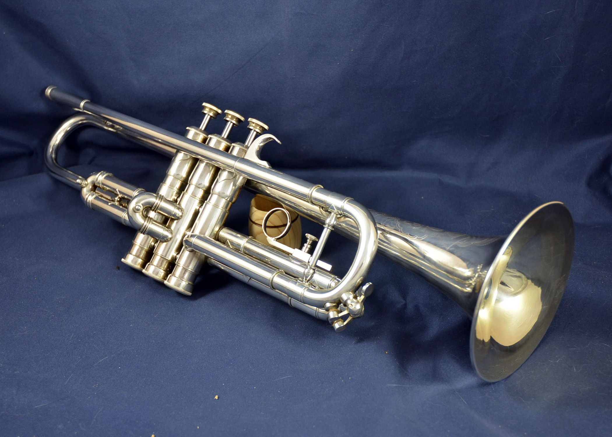 En balanserad tysk! Det här är en modell som jag suktat efter länge, den enda trumpet som fick Louis Armstrong att lämna sina Selmer-lurar hemma. Om det, se nedan, om trumpeten, klicka som vanligt på bilden för att komma till galleriet med bilder och text.