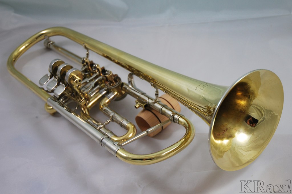 Sedan har jag också en Jupiter-trumpet ute på Tradera som inte kommer att läggas upp här. Den får nog gå två vändor till där, säljs den inte kommer jag att leka lite med den och byta ut munröret mot ett Bach Strad-munrör. Jag har testat, ja (det går att hålla två trumpeter i handen och låta stämbyglarna gå in i fel trumpet, så att säga), och med en typiskt Strad-25 leadpipe blir det ett helt annat instrument, väl värt rörbytet.