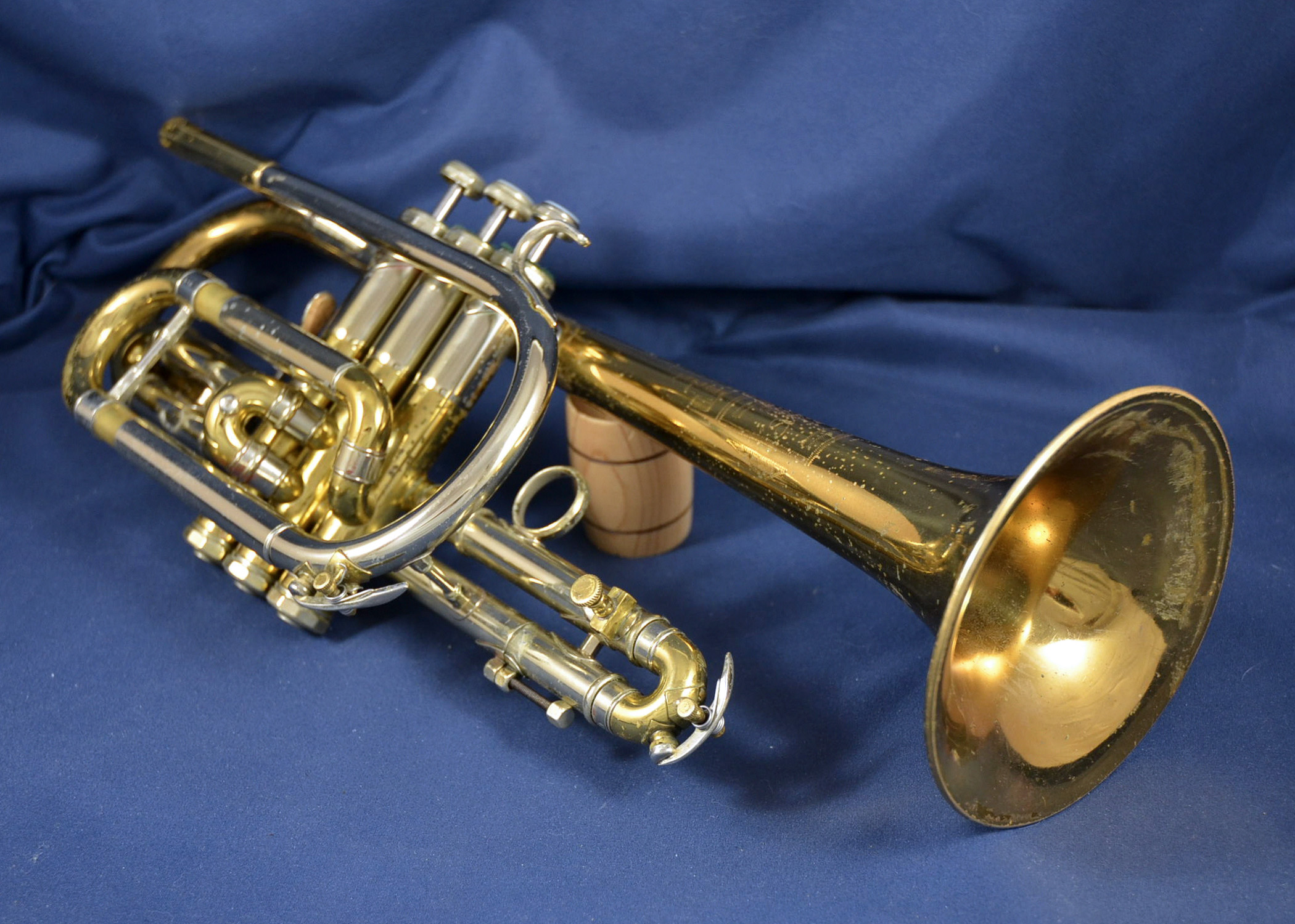 Hmmm, Holton är ju ett märke som på något sätt alltid hamnar i skymundan när man tittar på amerikanska instrument (ja, om man inte är hornist, förstås). Ändå finns det en mycket gedigen historia bakom firman, särskilt när man pratar om kornetter och tiden runt första världskriget. Det här är en senare modell, mycket tidstypisk sådan. Klicka på bilden för mer information och fler bilder.
